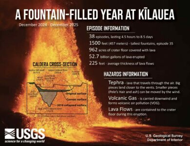 Today, December 23, 2025, marks the one-year anniversary of the incredible lava fountain eruption on the summit of Kilauea at Halemaumau Crater. So far, there have been 38 jaw-dropping episodes…