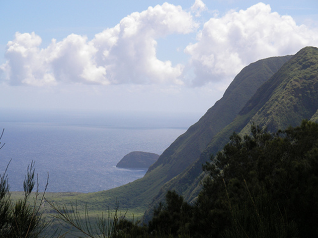 Our first stop was a Kalaupapa Lookout at Palaau State Park. A three minute walk leads to the lookout that offers a nice view of the remote Kalaupapa settlement and tall lush green sea cliffs. The elevation here is around 2,000 feet and the settlement is very close to sea level. The history of Kalaupapa is interesting. It was once a colony for victims of Hanson’s disease, formerly known as leprosy. Father Damien lived there and was a great help ministering to the needs of those suffering from Hanson’s disease.