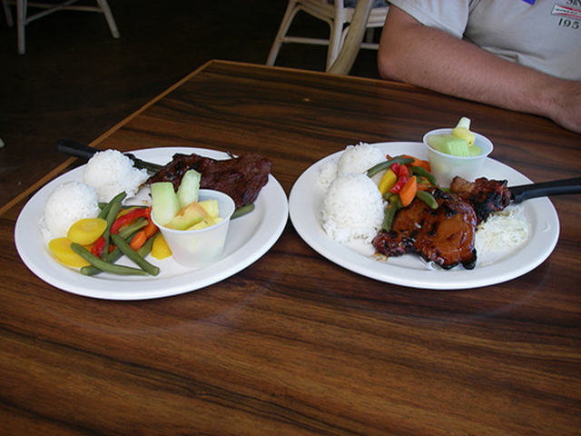 A lunch was included in the tour. We stopped at Hotel Molokai at their beach side Hula Shores restaurant. We had a selection of beef or chicken with rice, steamed vegetables and fresh fruit cup. My husband and I had one of each and thought the food was pretty good.