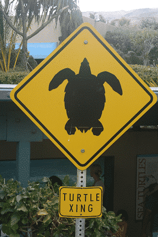 Well, it seems that I’m not the only person who likes to take photos of unusual signs. Here’s a “turtle xing” sign photo submitted by my friend Kris. He took this photo at the Maui Ocean Center by the turtle lagoon.