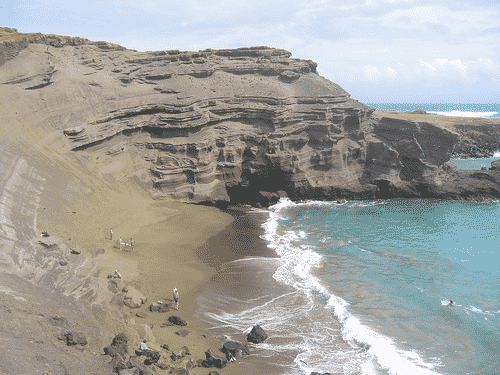 Hawaii also has a green sand beach that’s located near the southern most tip of the Big Island. I’ve not had the opportunity to see it yet. It’s still on my to do list. I found this excellent photo of the green sand beach on Flickr. The photo credit goes to RaShi with use by Creative Commons.
