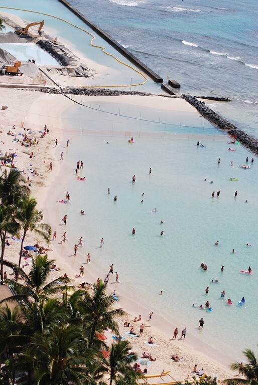 If you’re looking at staying in any of the beachfront hotels in that area, you may want to check and make sure that there will be a beach there during your stay, just in case. Several of the hotels are currently beachless, and are in the process of bringing sand back in to rebuild the beach areas. There was a large dredge out in the water pulling sand up and pumping it over to the shore to rebuild the beach. [Sheila’s note: this Waikiki beach widening project is supposed to complete in April, though sometimes projects like these can’t be precisely predicted.]