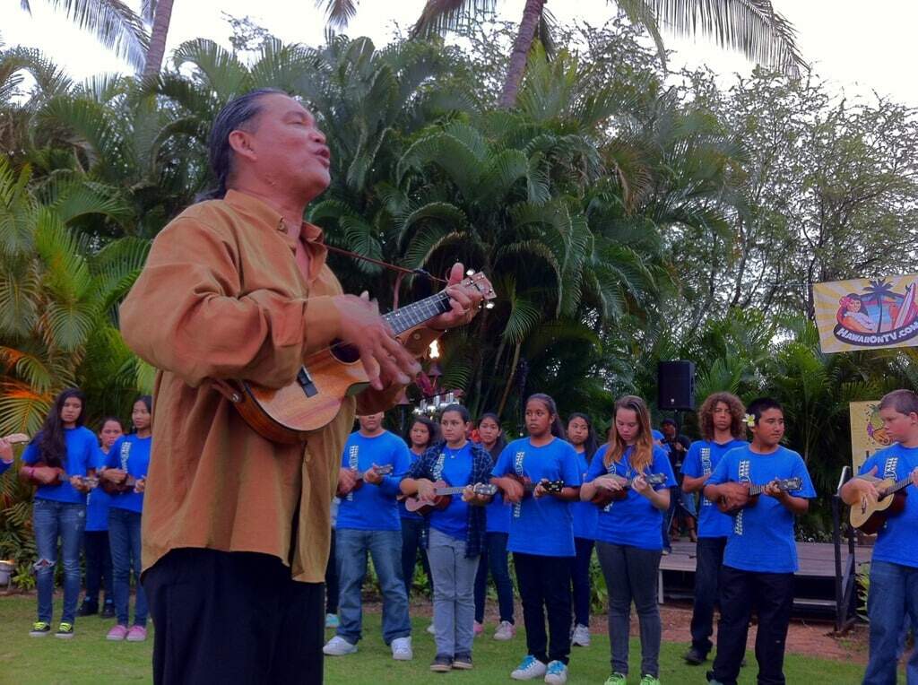 We enjoyed a beautiful start to the Lanai Ukulele Festival with performances by Benny Uyetake and 45 of his ukulele students from Kalama School Ukulele Band, Richard Ho`opi`i, Kawaika Kahiapo, , CJ “Boom” Helekahi, Hula Honeys, and Byron Yasui.