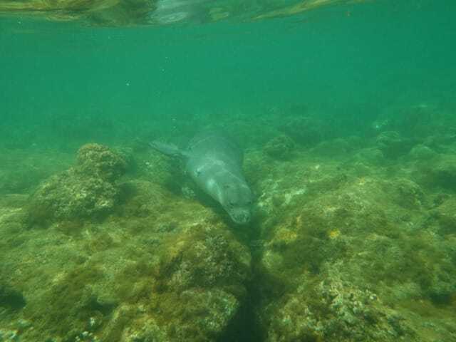 John tells us that the monk seal approached him – right up to his snorkel mask! He stopped taking photos at that point. Then the seal swam towards the beach.