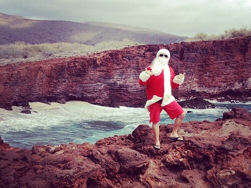 Santa has been visiting Lanai to relax and rejuvenate before his big night later this month. The nice folks at Four Seasons Lanai sent us this exclusive photo of Santa exploring the coastline beside of Pu’uphehe, which is also known as Sweetheart Rock.
