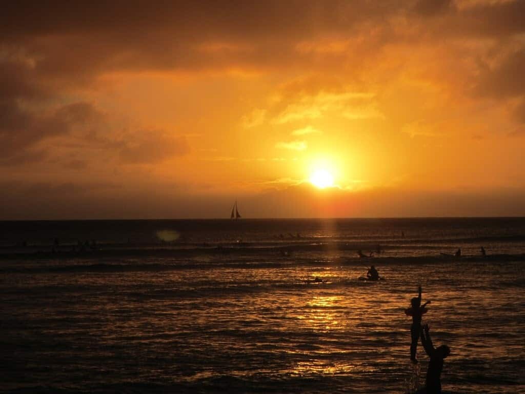 This photo was taken on Waikiki beach, while we sat among hundreds of other tourists taking dozens of sunset photos. It wasn’t until we put the photos onto our computer that night that we noticed the daddy and child in the lower right corner, caught in mid-throw, that made this picture stand out from all the others.