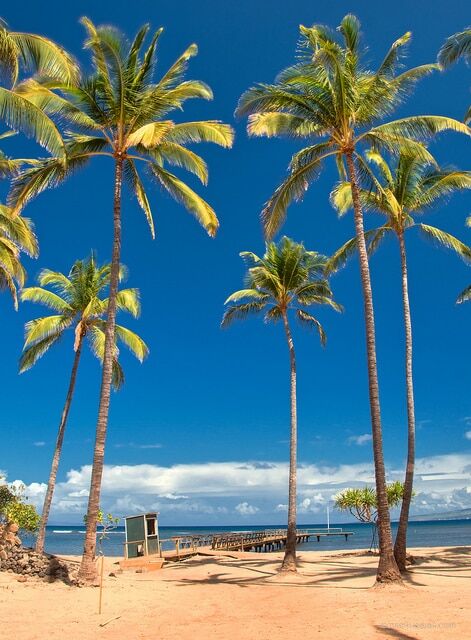 With tall coconut trees, a golden sand beach and view of Maui make Club Lanai very scenic. We walked to the end of the pier and watched breaching humpback whales. This place was almost magical. We would have loved to have lingered here longer, but there were more sights to see.