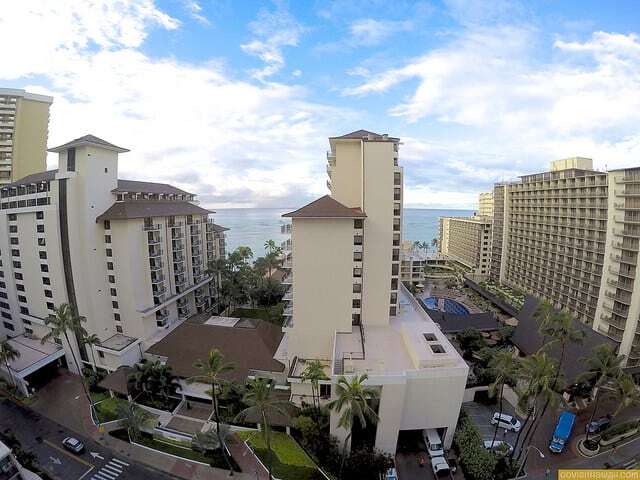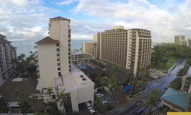 Embassy Suites Waikiki Beach Walk isn’t located on the beach. I estimate that walking distance from the hotel to the beach is no more than a five minute walk down the public beach access path between the Halekulani and the Outrigger Reef on the Beach hotels. [Tip: for an uncrowded section of beach, head towards the beach fronting Fort Derussy Beach Park located to the west of Outrigger Reef on the Beach.]