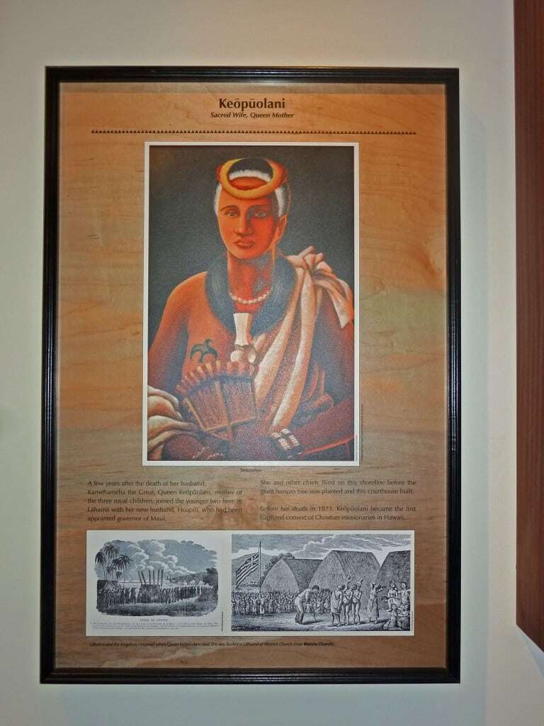 We took several photos during our tour. These first two photos were taken in the Old Lahaina Courthouse, which today is home to Lahaina Heritage Museum – showing a variety of very interesting exhibits.