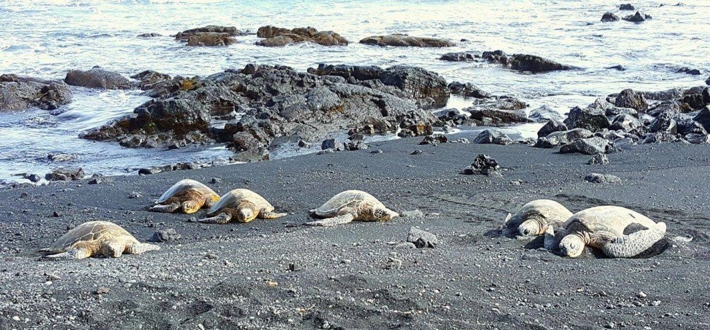 Those are two wonderful firsts! What an amazing scene with so many honu resting on this black sand beach.