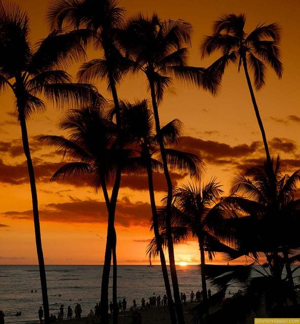 Then, the sun makes its grand finale with a Waikiki sunset. Everyone stops to enjoy this spectacular display.