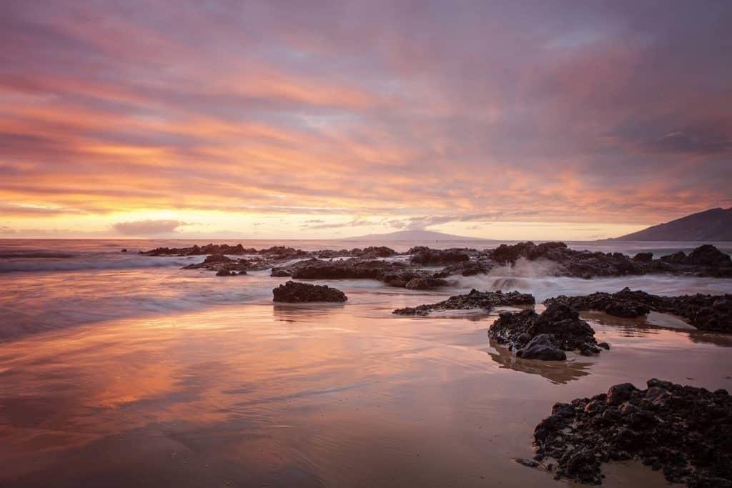Mahalo to Lisa Seyfried of Nelson, British Columbia for this Aloha Friday Photo of a sunset from Kihei, Maui. Isn’t it beautiful how the sunset colors are reflecting on the wet sand?!