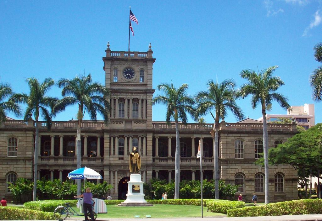 The building in this photo, Ali’iolani Hale, was commissioned by King Kamehameha V, the great-grandson of King Kamehameha the Great. It was built between 1871 and 1874. Ali’iolani Hale was originally designed to be a palace, but was ultimately dedicated as a government building. It’s currently the home of the Hawaii State Supreme Court.