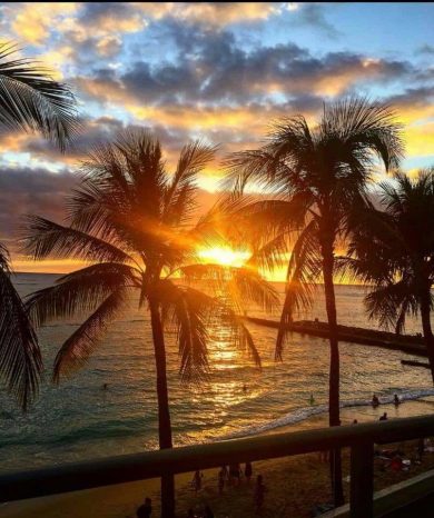 Mahalo to Britne Terrell for sharing this sigh-worthy Aloha Friday Photo. Britne perfectly framed this shot with the setting sun beaming between two palm trees. Happy Aloha Friday!